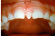 Puudub ülemine tsentraalne intsisiiv, kuid külgmised lõikehambad on juba lõikunud.